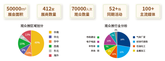 深圳地处粤港澳大湾区中心,以新能源、半导体和无人机产业为代表的新兴产业全球领先制造中心,同时辐射珠三角地区制造业产业集群。由于工业气体服务半径制约,据不完全统计,未来5年内珠三角工业气体的需求增加两倍以上,为气体设备市场提供庞大市场需求。同时由于中南亚、中东、非洲等新兴市场对气体设备采购需求旺盛,深圳作为气体设备进出口中心,将吸引更多国外采购商参观交流,为企业出海提供帮助。